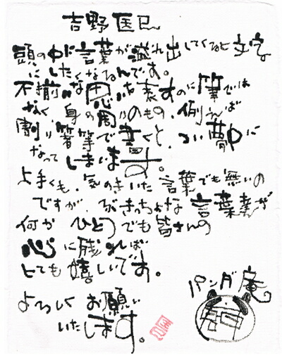 パンダ庵こと吉野匡己さんの書です。